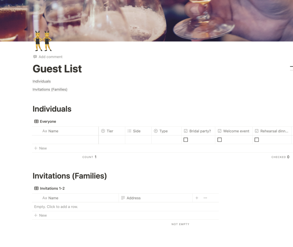 • Guest lists with additional fields to sort invitees into tiers as headcount changes, create lists for other events, and filter based on these criteria
